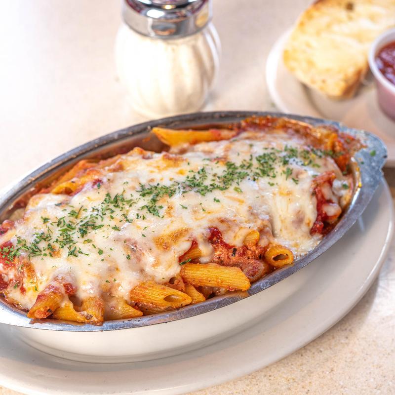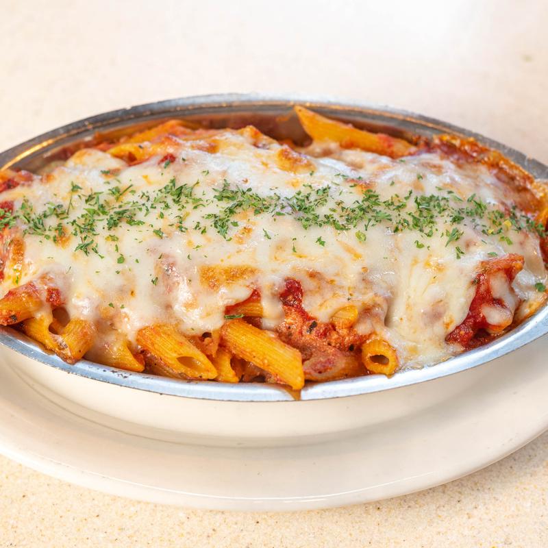 Your choice of pasta mixed with ricotta and our homemade marinara, then topped with mozzarella cheese and baked to perfection | Substitute meat sauce