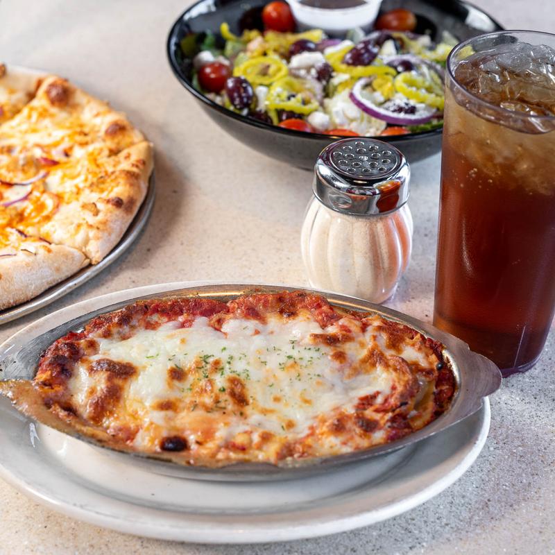 Layers of lasagna baked with ricotta, Parmesan, homemade marinara and sautéed spinach. Topped with shredded mozzarella cheese and baked until golden.